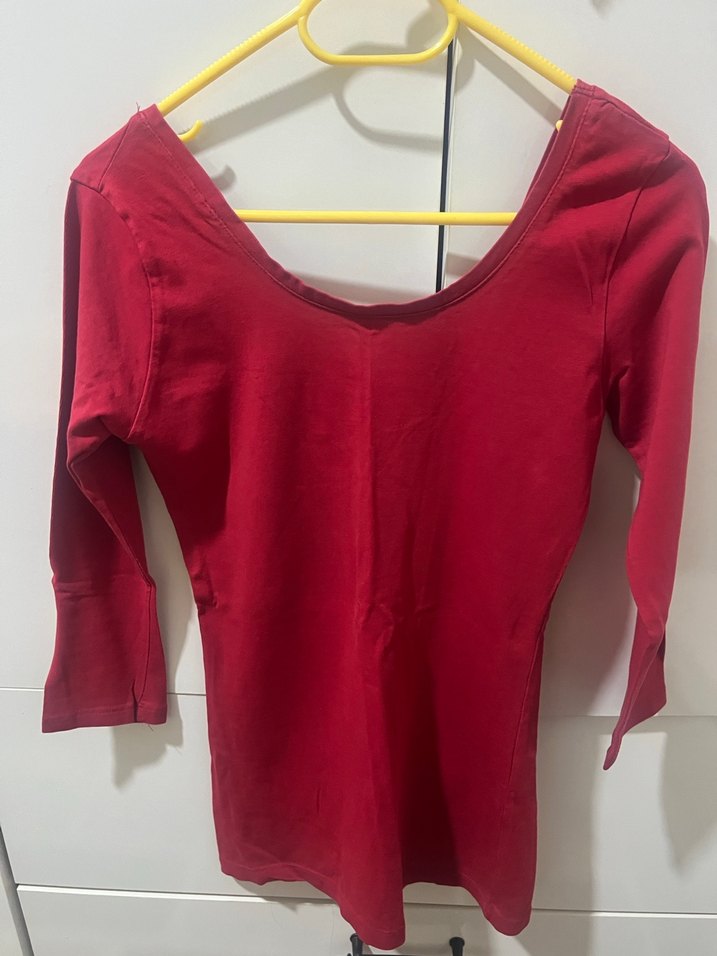 kırmızı renkte, kayık yaka ve fakir kollu, vücuda oturan kadın bluzudur. Düz ve sade tasarımıyla günlük kullanıma uygun, rahat sentetik kumaştan yapılmıştır. Midi boyda, minimal ve şık bir tarza sahiptir.