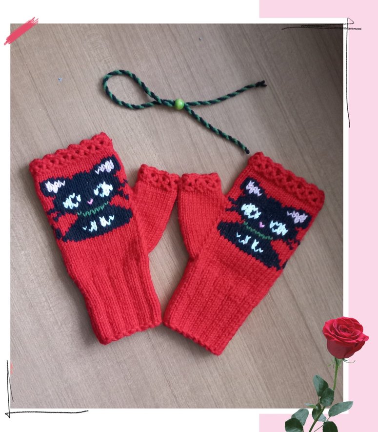 Kırmızı Kedili Örgü Eldiven