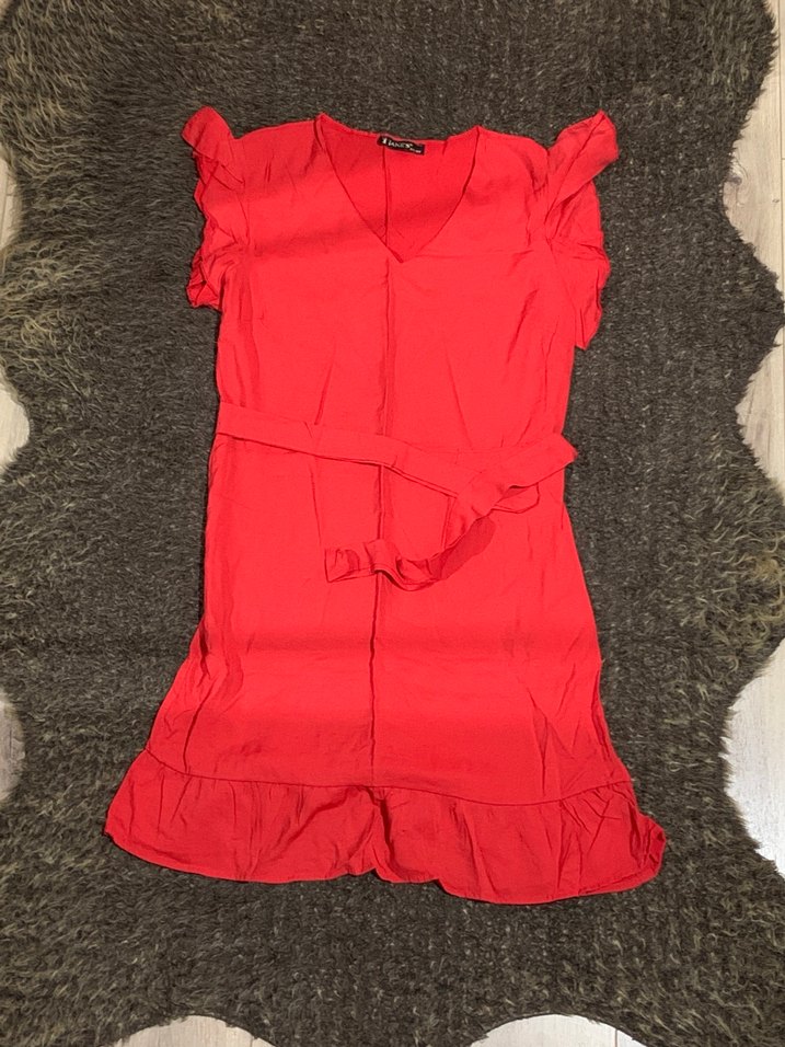 kırmızı kemerli ince midi elbise
