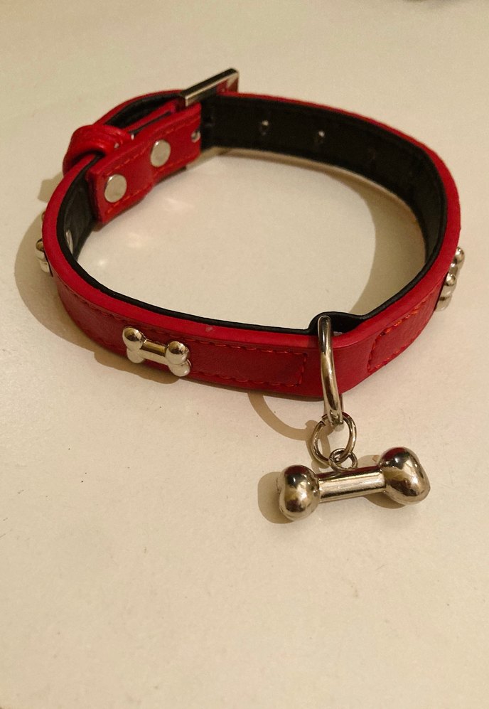 Kemik detaylı köpek tasması, çok severek aldık ancak, köpeğimize büyük geldiği için hiç kullanmadık. En: 2-2.5 cm Boy: 36 cm