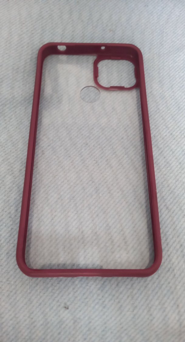 Kırmızı çerçeveli, zincir detaylı ve şeffaf arka yüzeye sahip, counterculture tarzında telefon kılıfı. çizikler mevcut