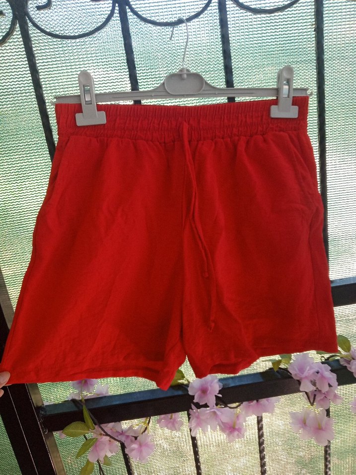Nefes alabilen keten kumaştan, rahat kesim kırmızı mini şort, dış mekan sokak stiline uygun, zahmetsiz şıklık sunar.