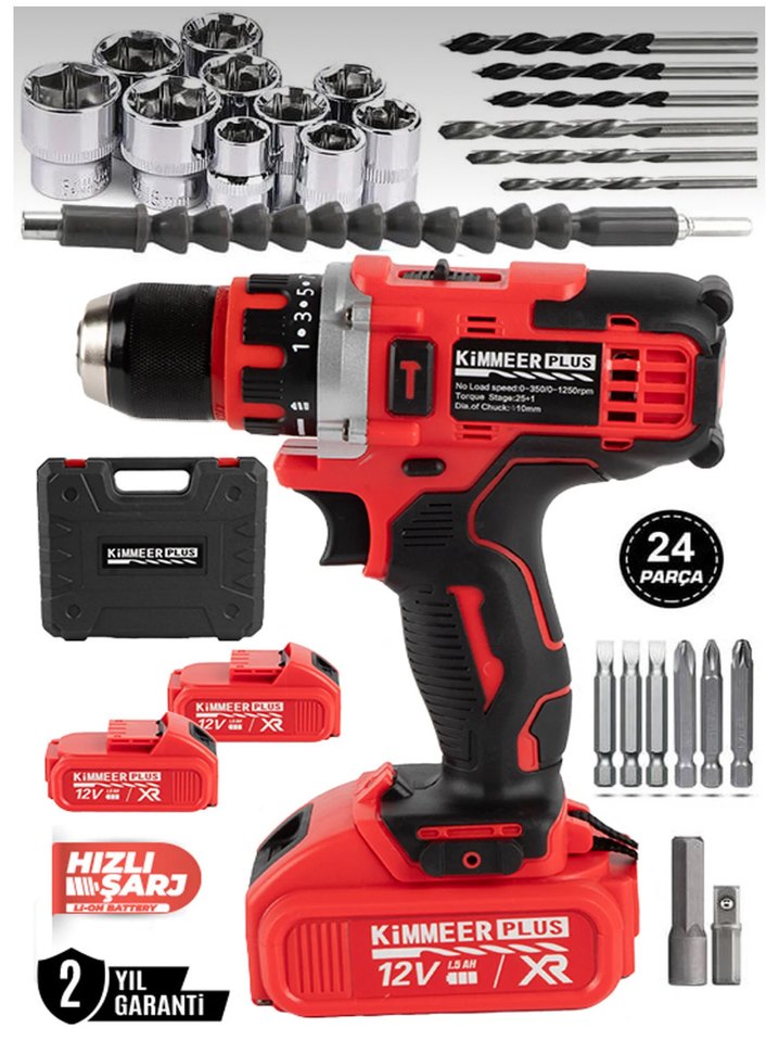 Kırmızı KiMMEERPLUS 12V Akülü Matkap Seti