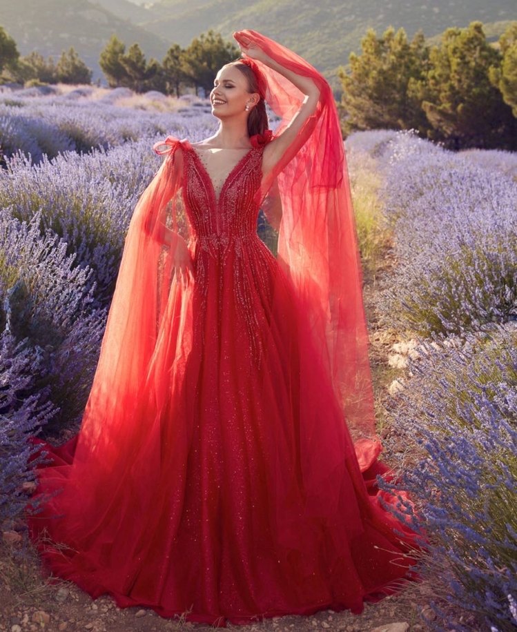 Kırmızı Kına Uzun Abiye Elbise