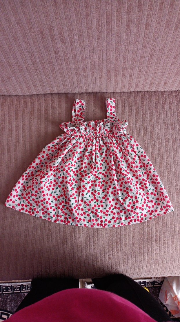 kırmızı Kirazlı Renkli Fırfırlı çocuk elbisesi