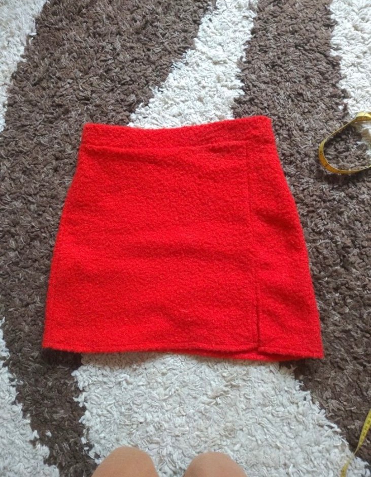 Sıfırdır boyu 42 cm bel ölçüsü 70 cm Kırmızı, kısa ve dar kesim mini etek, yumuşak kürk detaylı kumaşı ile rahat bir his sunar. Desensiz sade tasarımı günlük kullanıma uygundur.