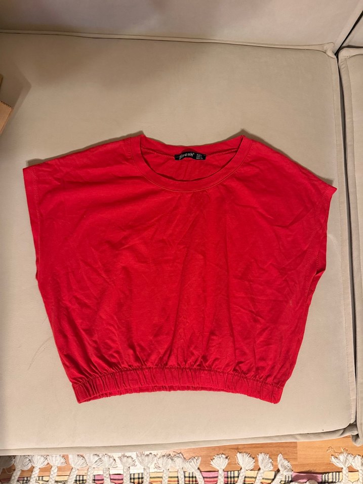 Kısa kollu, bisiklet yaka, kırmızı crop top. Rahat kesimli, nefes alabilen keten kumaştan üretilmiştir. Günlük sokak stili için uygundur. ✨