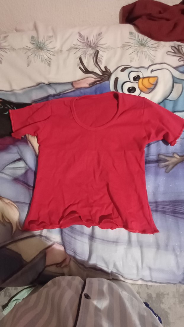 Kısa kollu, yuvarlak yaka ve kırmızı renkli, yumuşak sentetik kumaştan üretilmiş dar kesim hamile tişörtü. Günlük rahat sokak stili için uygundur.