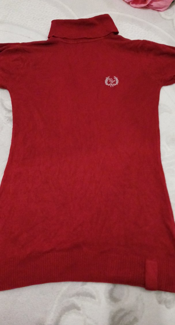 Kırmızı renkli, kısa kollu, yuvarlak yakalı, vücuda oturan hamile tişörtü. Yumuşak ve sıcak kumaştan, parlak görünümlü, rahat ve şık tarzda.