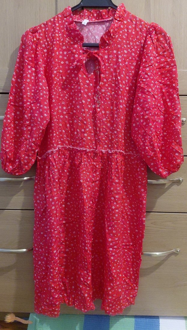 kırmızı desenli uzun kollu kıssa elbese