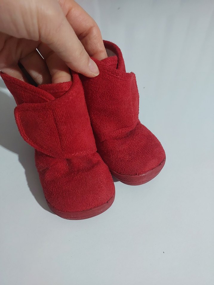Yumuşak ve sıcak kumaştan, kolay giyilebilen cırt cırtlı kırmızı kız bebek botu. Sade ve renkli tasarım.