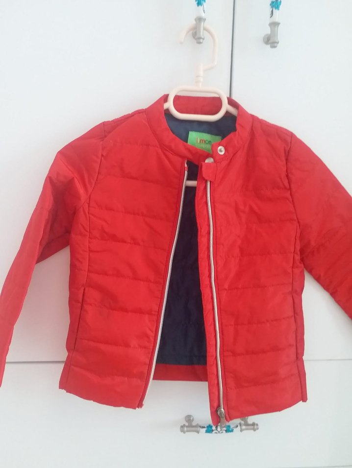 Fermuarlı, kırmızı renkli, yumuşak ve sıcak kumaştan yapılmış erkek çocuk montu. Notlu yaka tasarımı ve dar kesimiyle şık ve rahat.