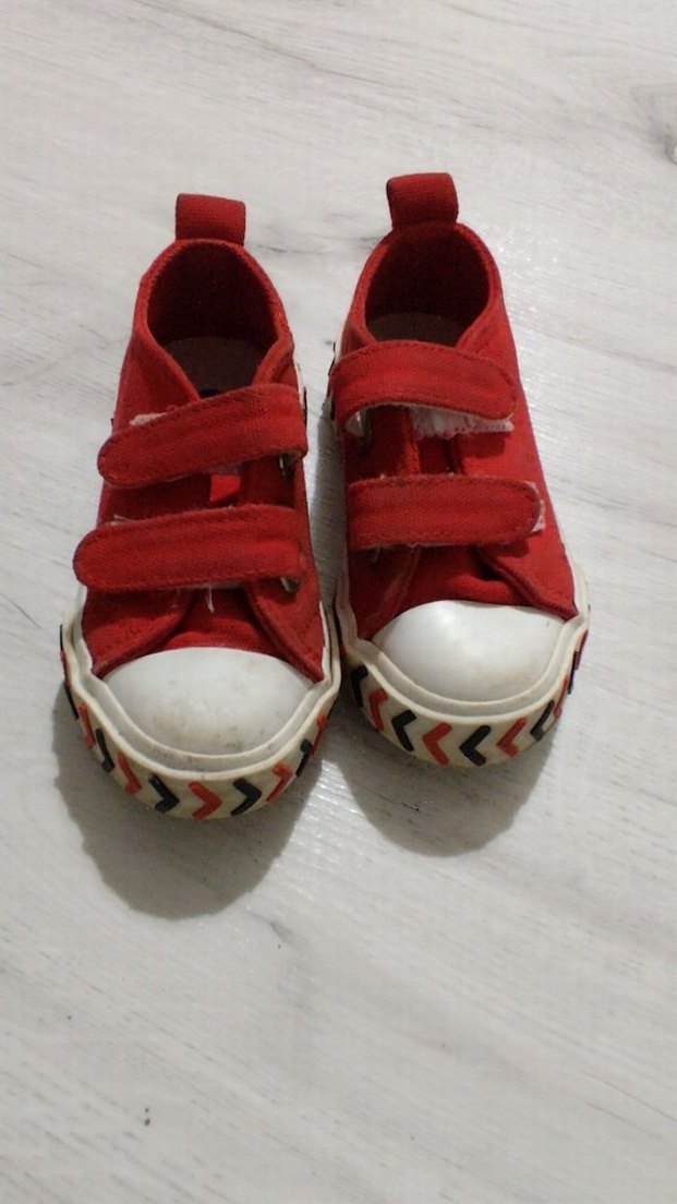 Kırmızı renkli, velcro bantlı kız çocuk spor ayakkabısı. Lastik taban kenarında renkli desenler bulunur. Streetwear tarzına uygun.