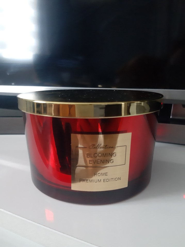 Ev kullanımı için parlak bordo renkte, altın kapaklı, premium edition mum. ️