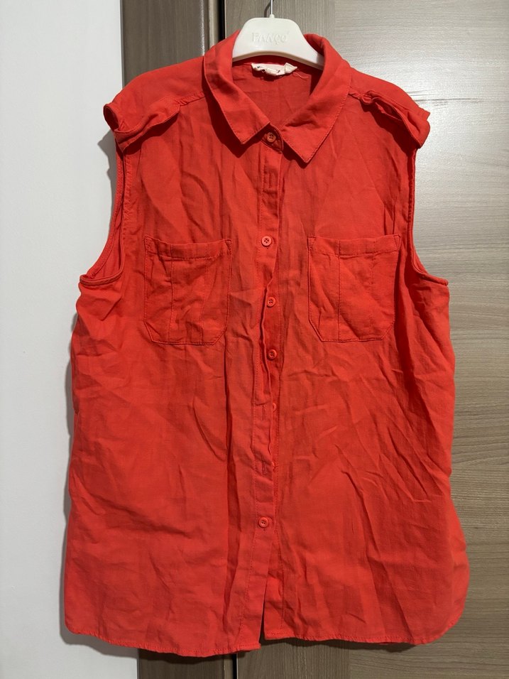 Kırmızı Kolsuz Düğmeli Keten Gömlek