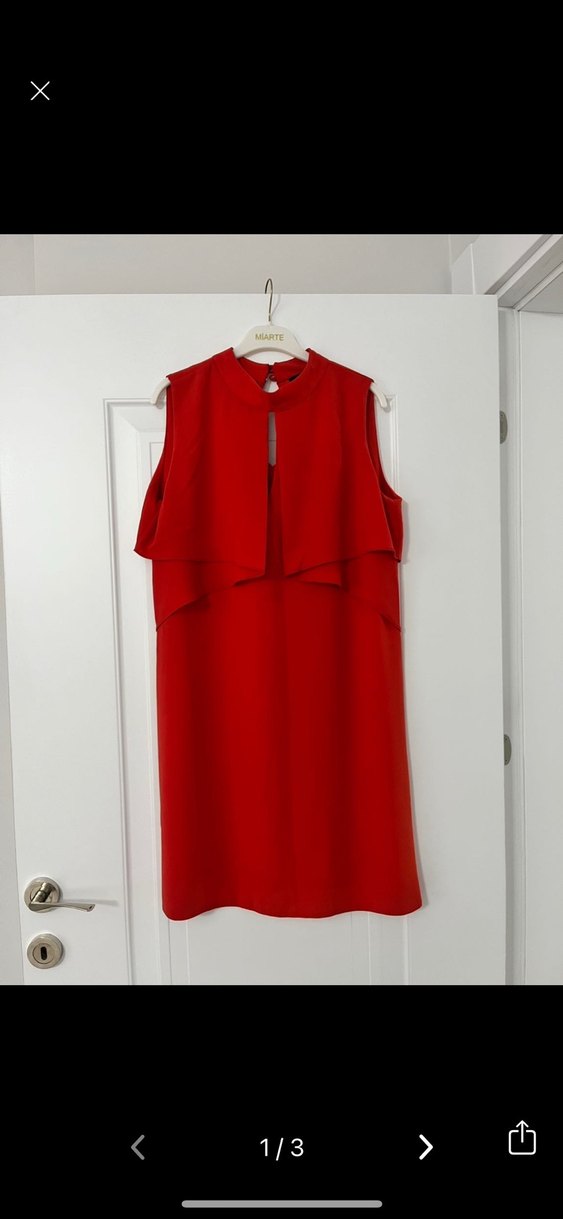 Kolsuz kırmızı mini elbise, yüksek yaka l beden