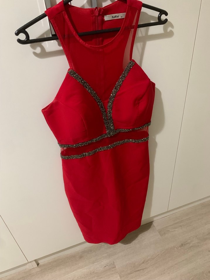 • Kırmızı, v yaka, askılı, mini kesim ve işlemeli detaylara sahip dar kesim abiye elbise❤️✨ • Beden: 38 • Hiç bir defosu yoktur. • Bir kez giyildi.