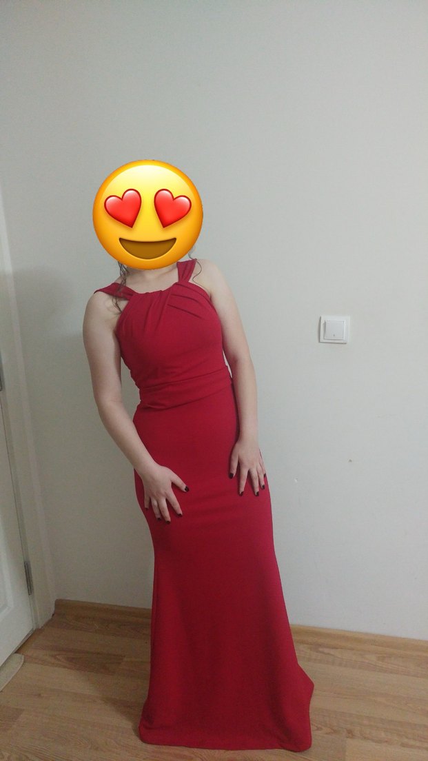 Kırmızı krep likralı uzun elbise - Görsel 1