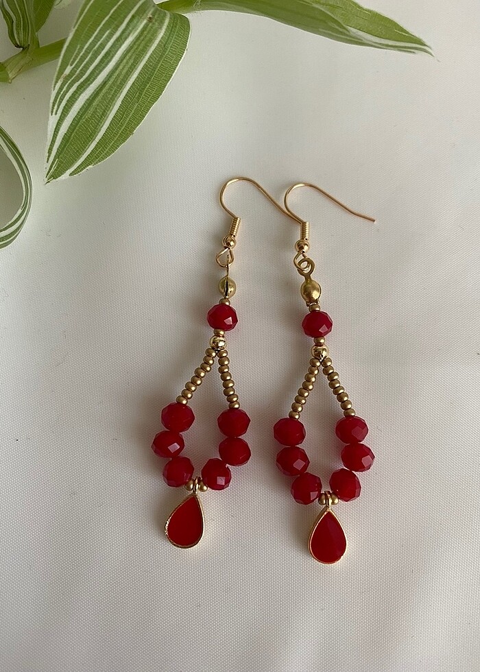 Kırmızı kristal küpe