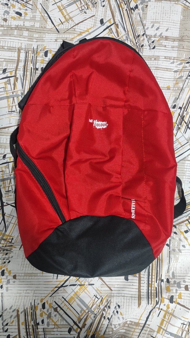 Canlı kırmızı renkte sırt çantası, geniş ana bölme ve ön fermuarlı cep ile kolay düzen sağlar. Dayanıklı yapıya sahiptir. hiç kullanılmadı.