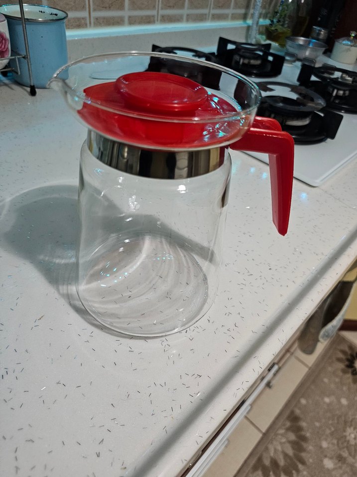 Kırmızı Kulplu Cam Demlik