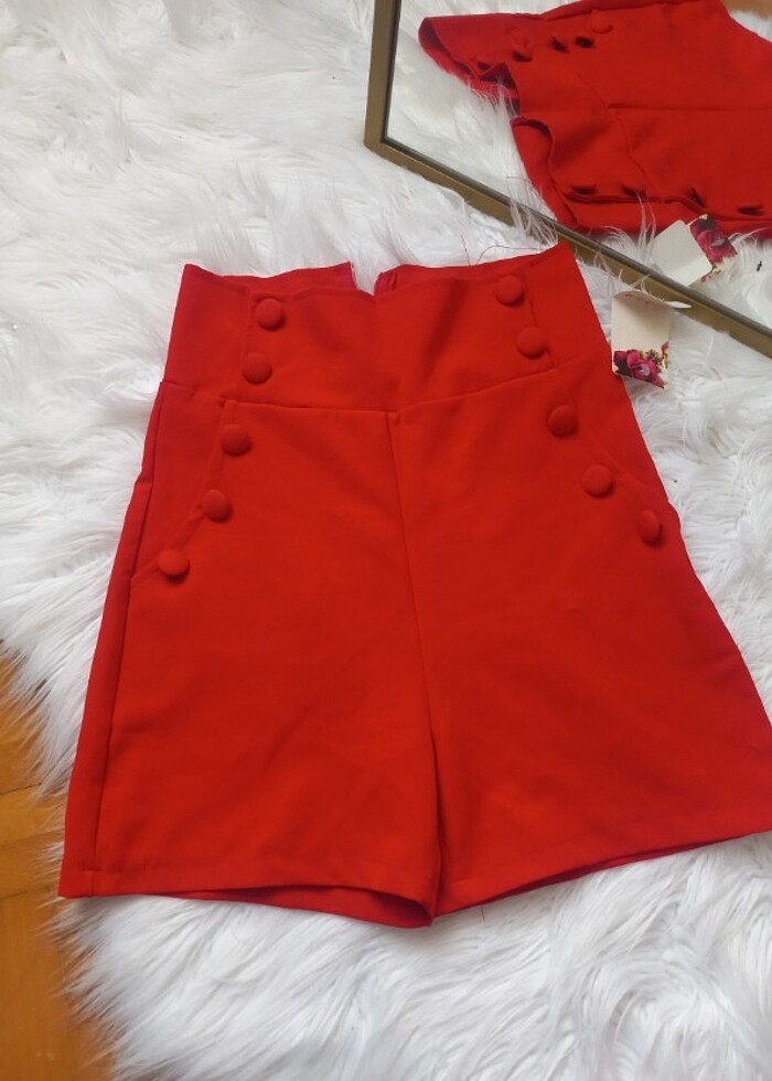 Kırmızı Kumaş şort duruşu kalıbı gerçekten çok güzel