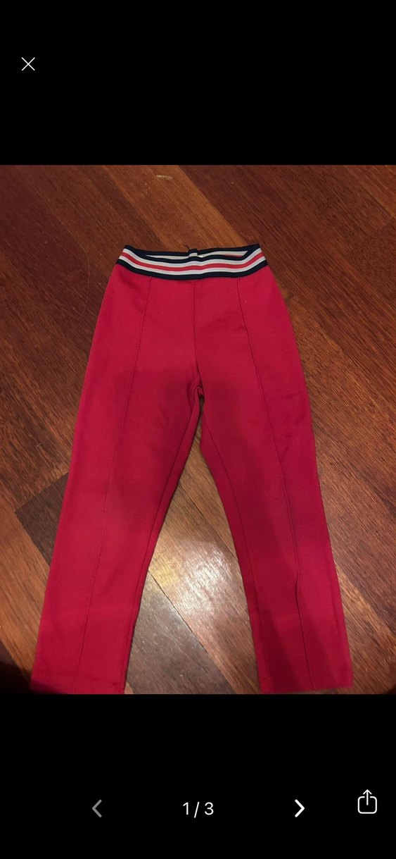Elastik bel, kırmızı kumaştan yapılmış tayt pantolon. Kusuru yoktur.