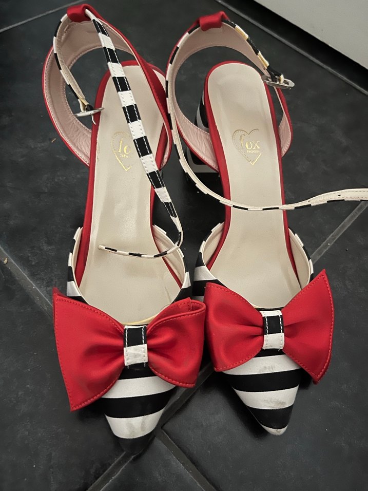 Kırmızı kurdelele topuklu ayakkabı