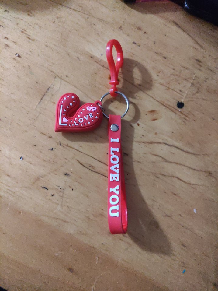 Kırmızı kalp şeklinde 'LOVE' yazılı ve 'I LOVE YOU' yazan kurdele askılı anahtarlık, bohem ve punk tarzlara uygundur. ❤️
