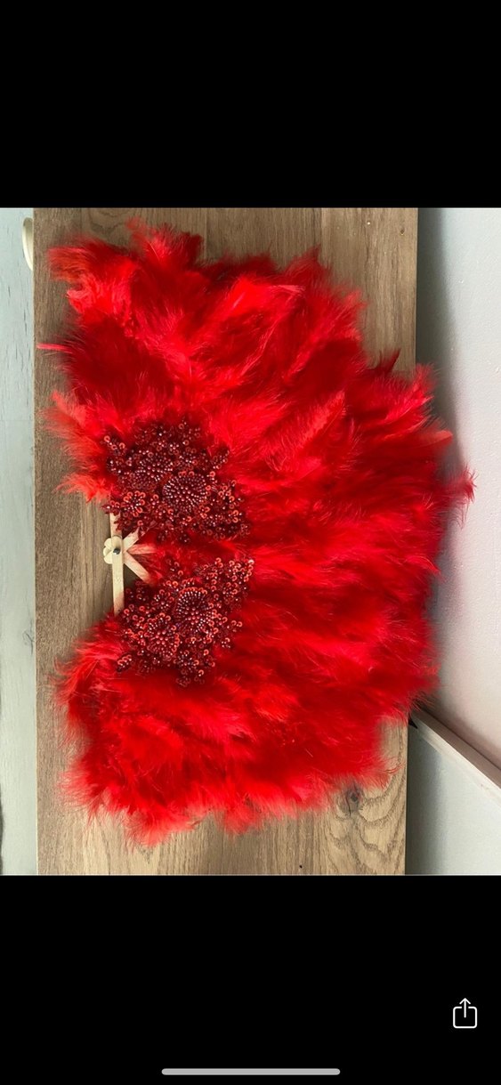 Canlı kırmızı renkte, yumuşak kürk detaylı ve boncuk işlemeli bohem ve avangart tarzda gelin aksesuarı. Renkli ve retro bir dokunuş sağlar.