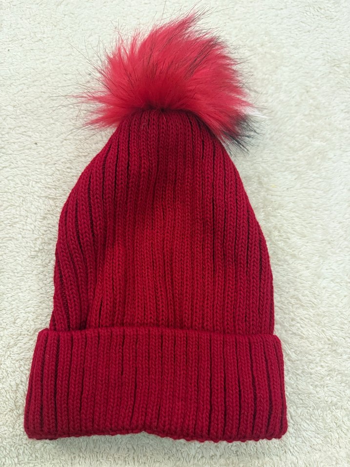 Kürk detaylı kırmızı yün bere, rahat ve renkli sokak stili için uygun.