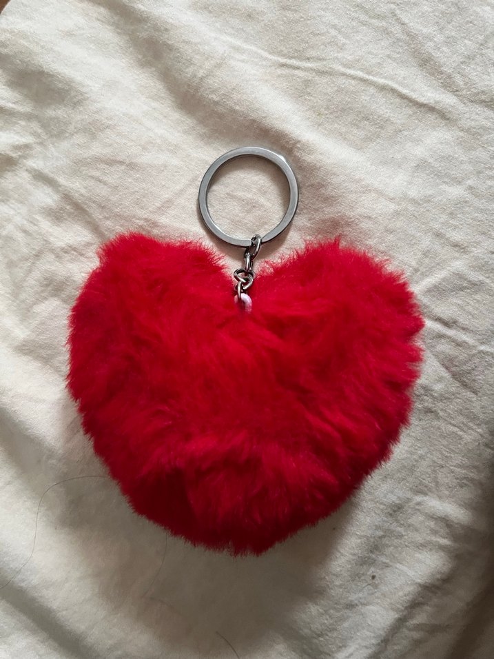 Yumuşak kürk detaylı, kırmızı kalp şeklinde renkli anahtarlık. Rahat ve bohem tarzı yansıtır, retro ve hippie dokunuş ekler. ❤️