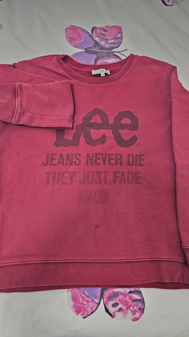 Kırmızı renkli, baskılı Lee sweatshirt, yuvarlak yaka ve uzun kolludur. Rahat kesimi ve yumuşak, sıcak kumaşıyla günlük kullanıma uygundur. 3lu fiyatidir. defolari var resimlerde gozukuyor