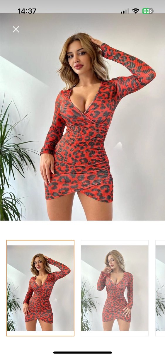 Uzun kollu, V yaka kırmızı leopar desenli mini elbise, sentetik kumaştan,, sokak modasına uygun rahat bir tasarım.m L beden uyumlu