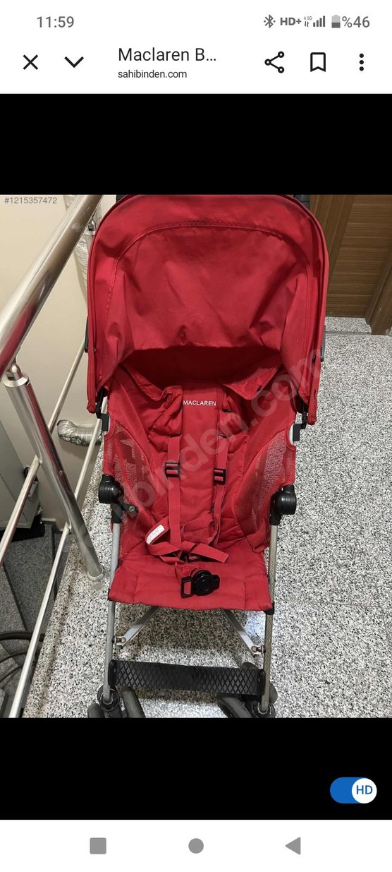 Kırmızı Maclaren bebek arabası, hafif çerçeve ve güvenli kemer sistemi ile konforlu sürüş sağlar. Güneşlik ve havalandırmalı yan fileleri bulunur.