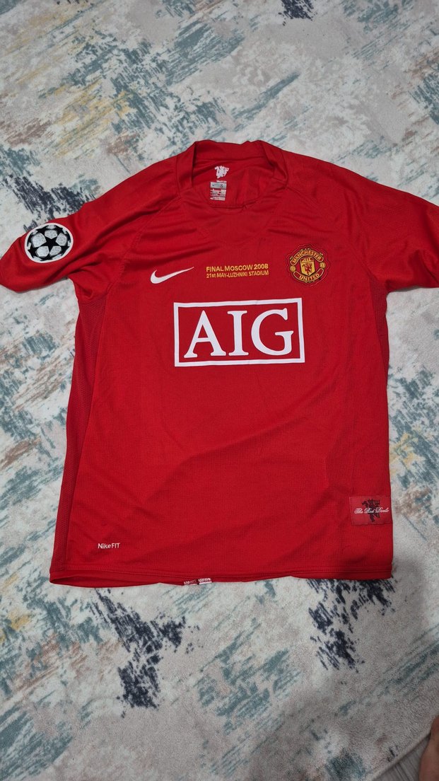 Kırmızı Manchester United forması, kısa kollu ve yuvarlak yakalıdır. AIG baskılı, dar kesim ve sentetik kumaştan üretilmiştir. Spor ve günlük kullanım için uygundur.