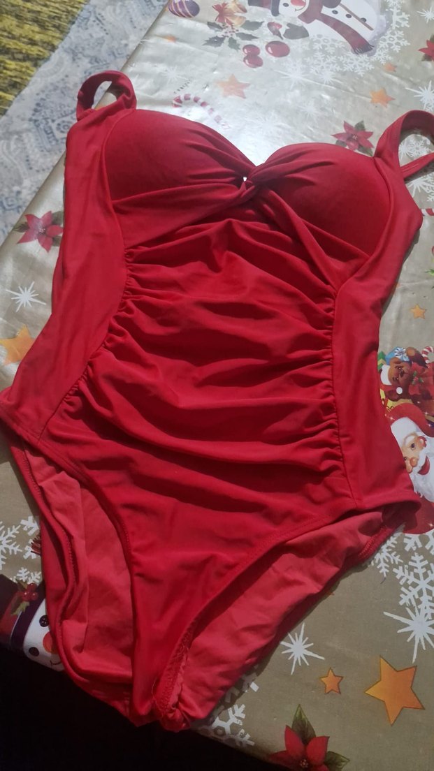 Kırmızı, drapeli detaylı, askılı ve vücuda oturan kadın mayo. Cesur, bohem ve vintage tarzıyla plaj için uygundur.