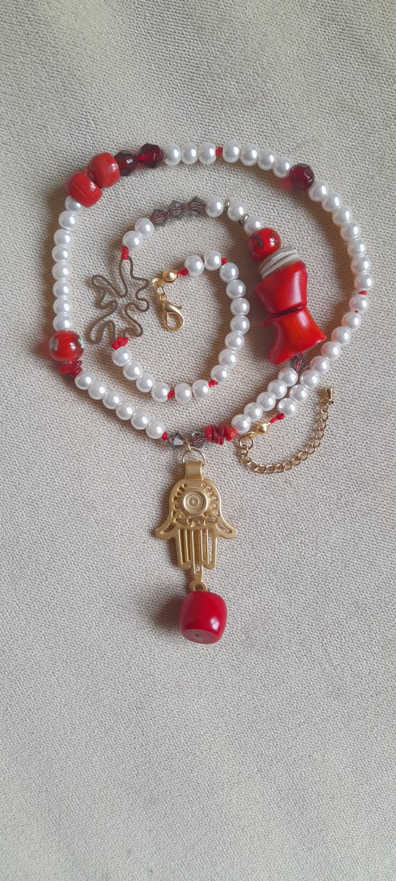 Kırmızı doğal mercanlar ve nakış detaylarıyla bohem tarzda midi uzunlukta cam inci kolye. Altın kaplama uçlu tasarım günlük kullanıma uygundur.50cm+8cm Hediye kutusu ile gönderilecektir. Gardropsumdaki diğer ürünlere bakmadan geçmeyin. #inci #mercan #kırmızı #kolye
