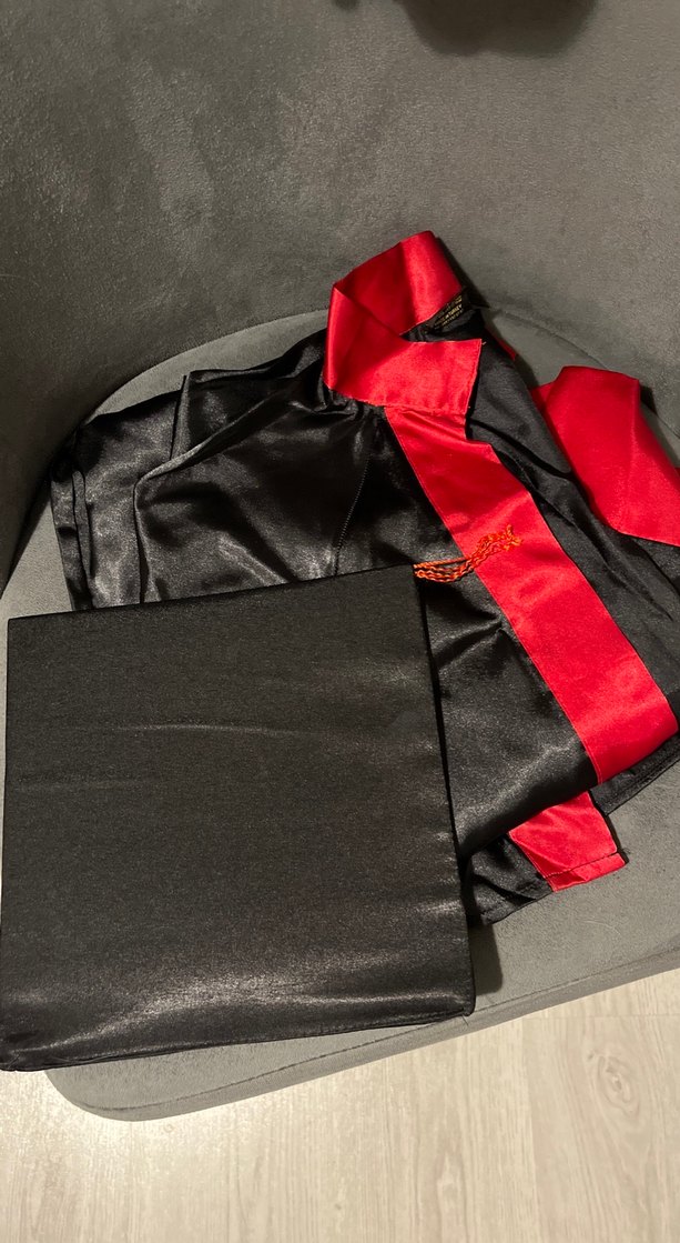 siyah kırmızı mezuniyet kıyafeti 1 kere kullanılmıştır yırtık sökük yok yenidir