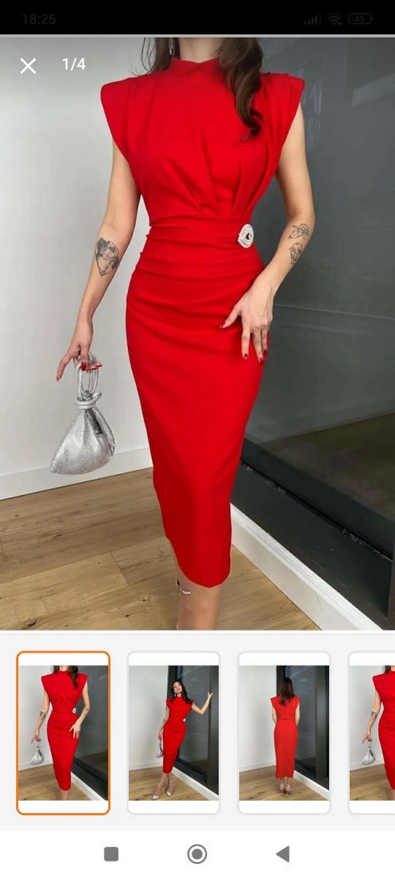 Kırmızı midi Abiye Elbise