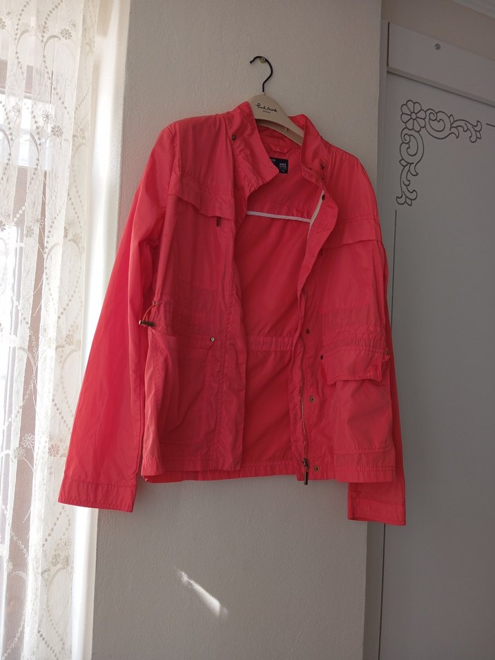 Parlak kırmızı keten kumaştan, fermuarlı, notched yaka ve gevşek kesim. Strappy kollu, midi boylu, gündelik ve dış mekan kullanıma uygun.