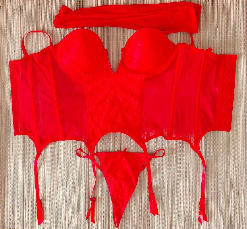 Kırmızı Midi Büstiyer ve Tanga Takımı