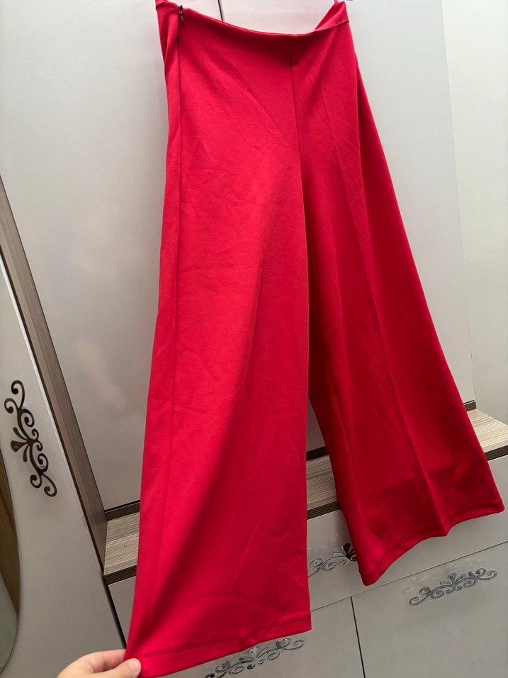 Kırmızı Midi Drapeli Kadın Kumaş Pantolon