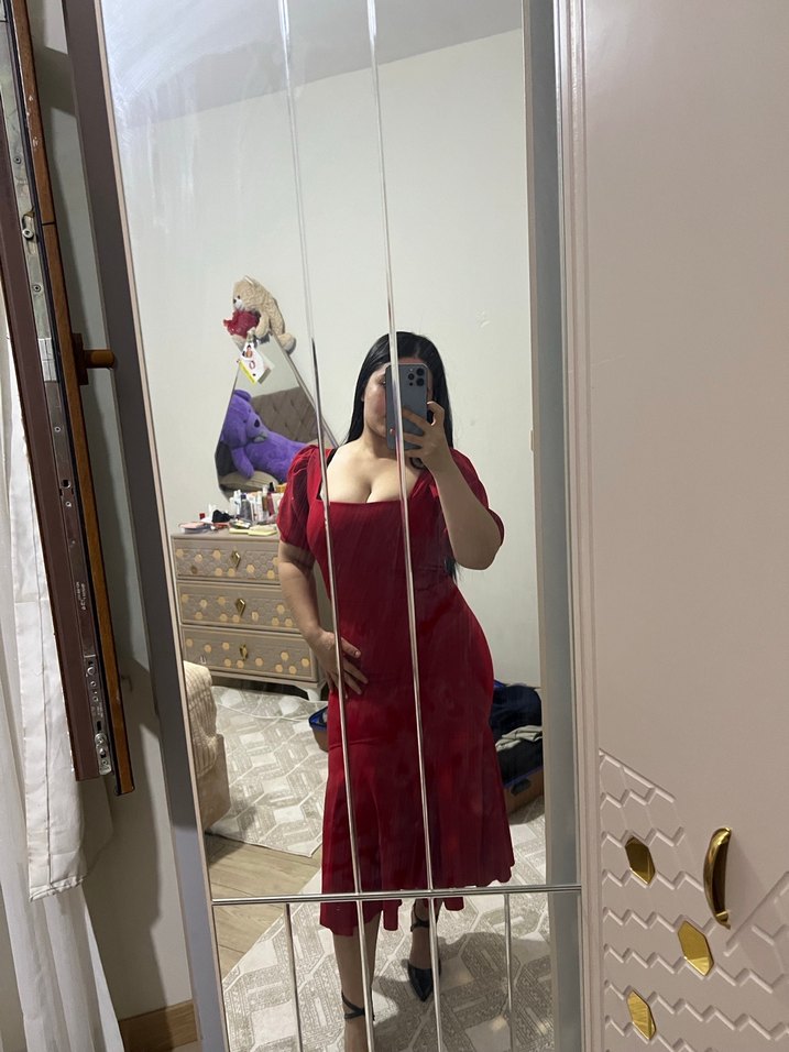 Balon kollu , kırmızı tonlarda şeffaf kumaştan yapılmış, vücuda oturan midi elbisedir. Romantik akşamlar için uygundur. ❤️ ürün yeni L beden M uyumluda olur