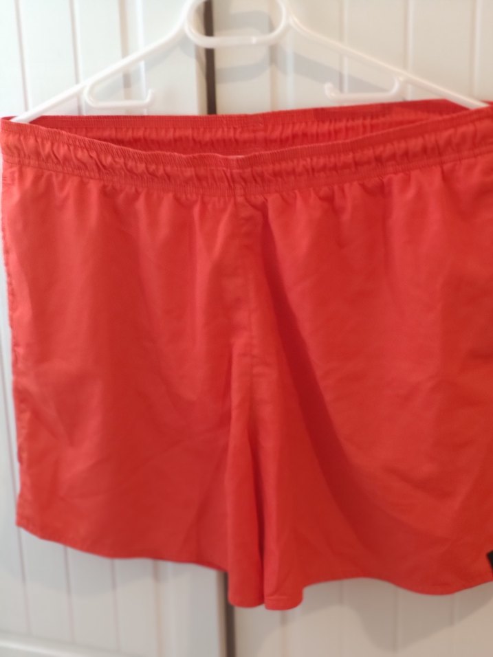 Pürüzsüz, parlak kırmızı kumaştan, erkek mayo şort.