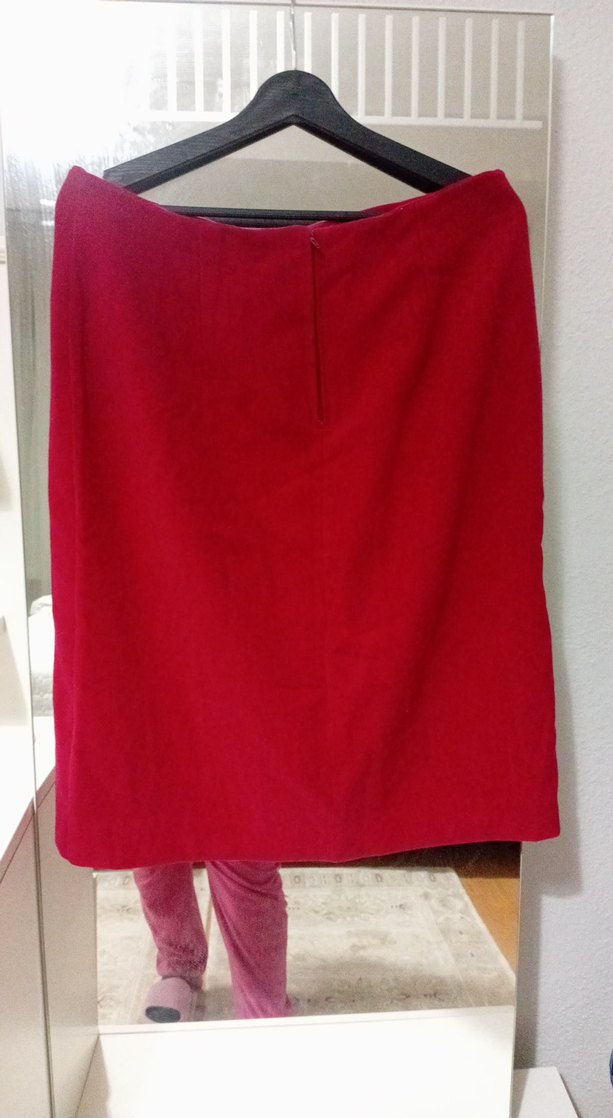 Kırmızı midi hamile eteği, dökümlü tasarım ve bol kesim ile yumuşak ve sıcak kumaştan üretilmiştir. Düz ve parlak yüzeyi minimalist bohem stiline uygundur.
