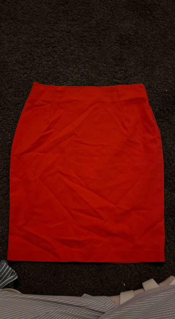 Bu kırmızı kalem etek, midi boy ve düz desensiz tasarımıyla ofis için uygundur. Sentetik kumaştan yapılmış, minimal ve zahmetsiz şıklık sunar. ✨ mini değil ama kısa bir etek hiç giyilmedi tertemiz