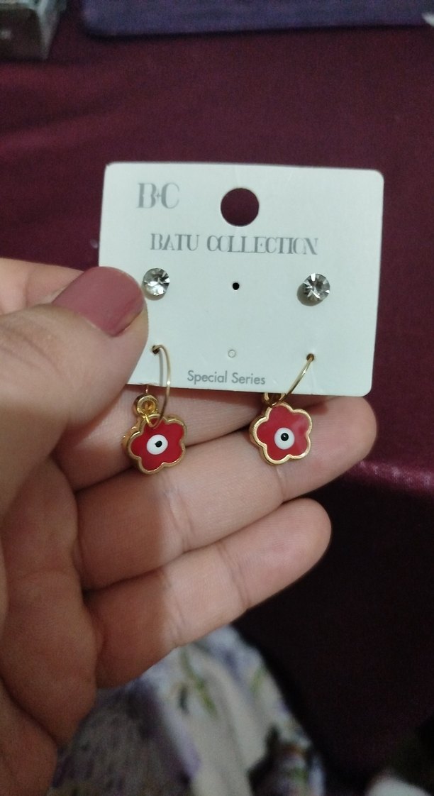 Kırmızı Mini Çiçekli Boncuklu Küpe