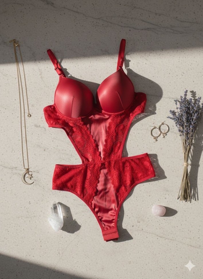 Kırmızı Mini Dantel Detaylı bodysuit