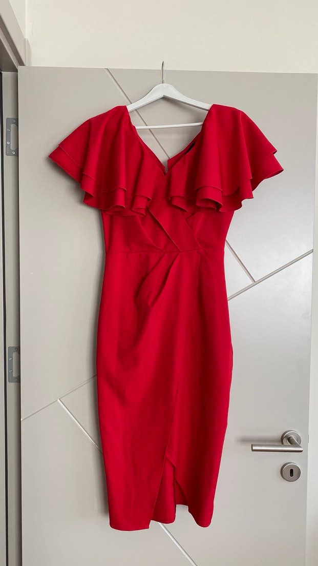 Kırmızı Mini Drapeli V Yakalı Abiye Elbise - Görsel 4